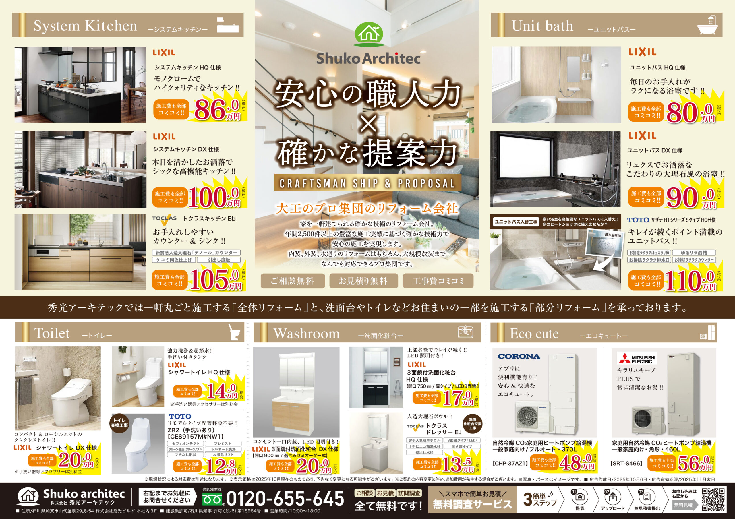 お問い合わせ先:秀光アーキテック 0120-655-645
